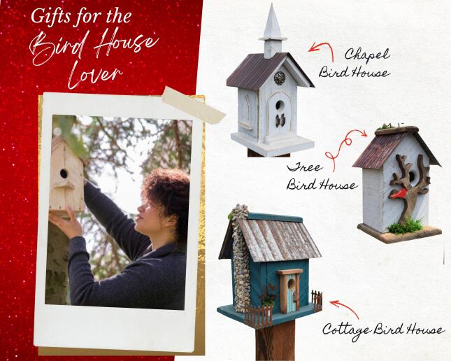 Give the bird lover in your life something truly special this season — a beautiful new home for their feathered friends! These handcrafted bird houses add character, warmth, and a touch of whimsy to any yard or garden.