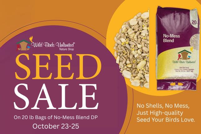 Fall is here — and your backyard birds are hungry! 🍂 There’s no better time to stock up on premium Wild Birds Unlimited seed during our Seed Sale, where you’ll save 15% on 20 lb bags of No-Mess Diced Peanut Blend.